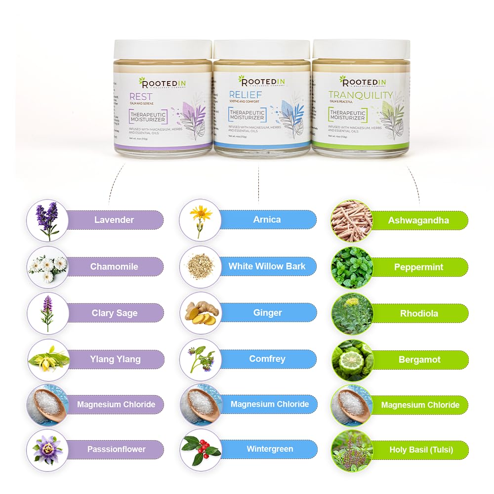 Relief Cream is specially formulated with high-quality magnesium and a blend of calming plant oils that are gentle and safe for sensitive skin.