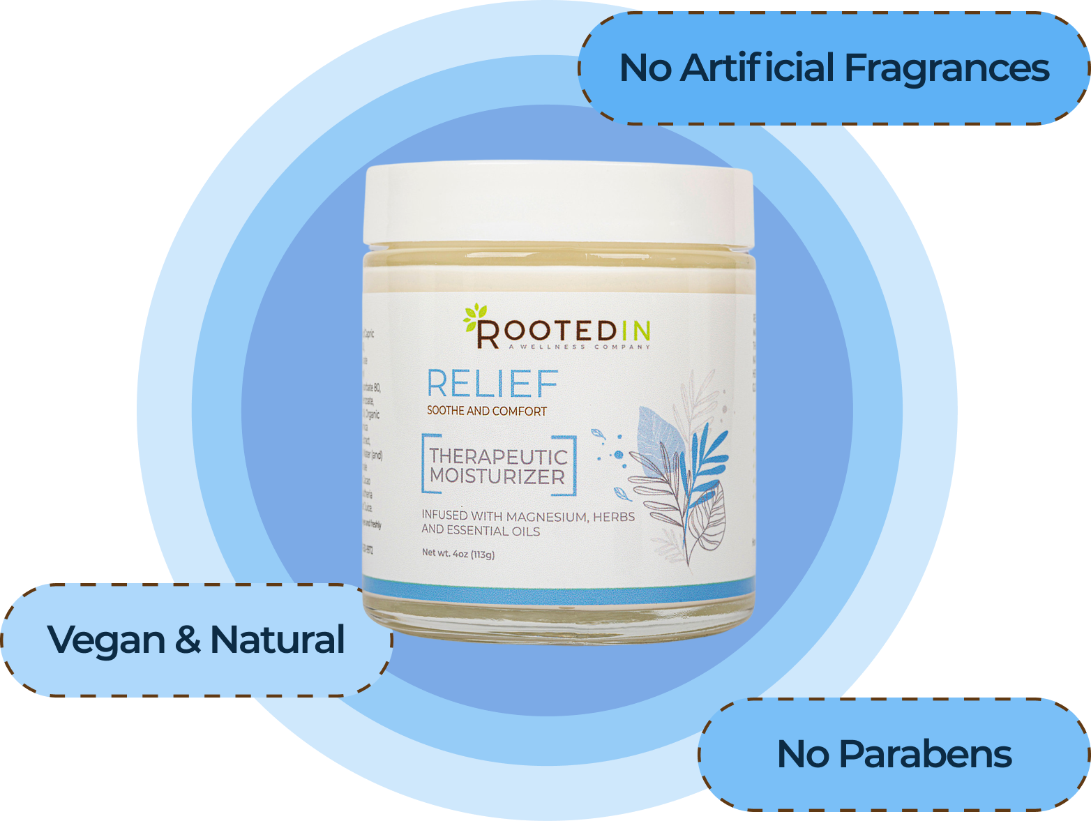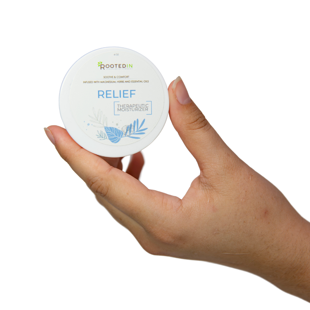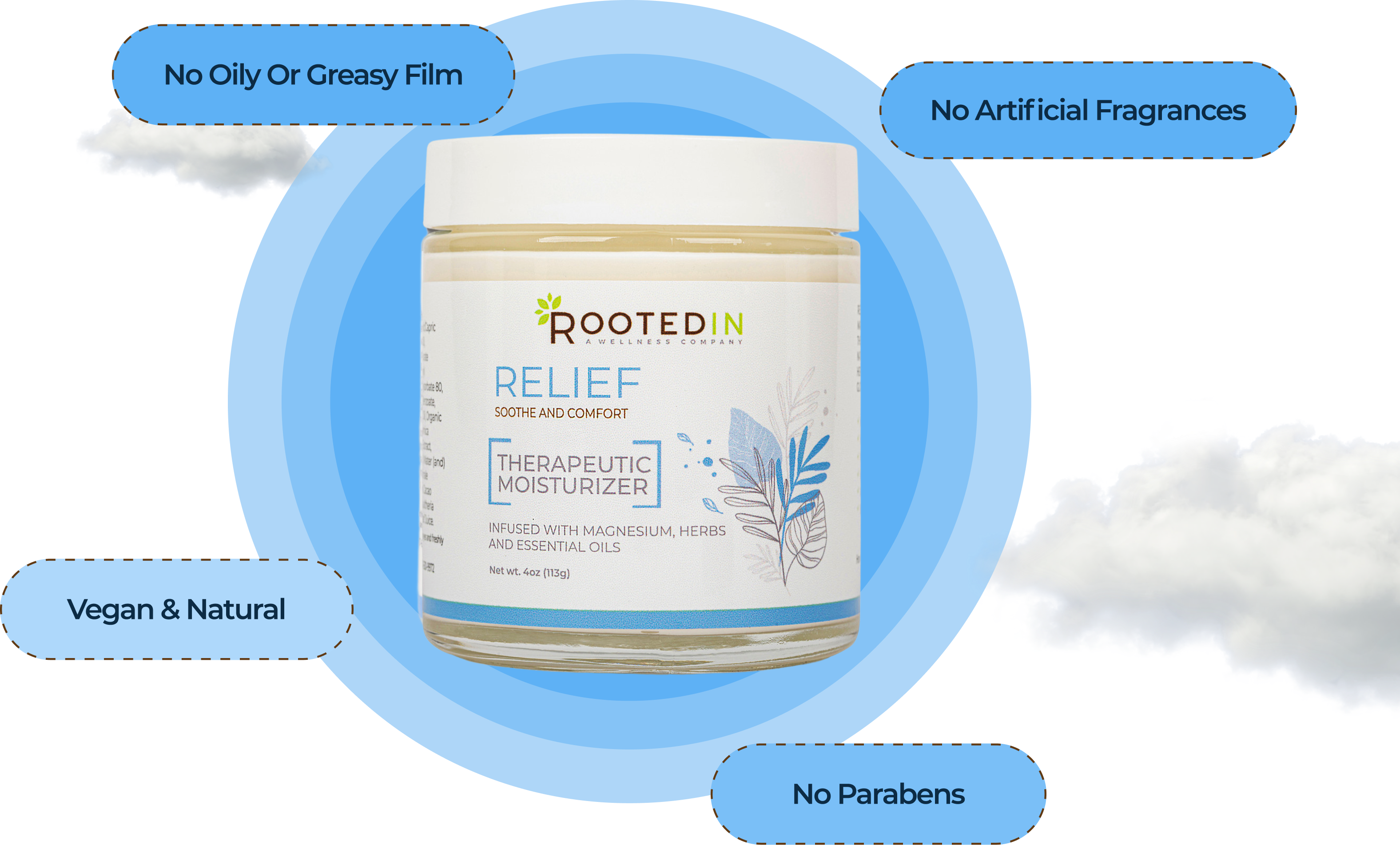 Relief Cream is specially formulated with high-quality magnesium and a blend of calming plant oils that are gentle and safe for sensitive skin.