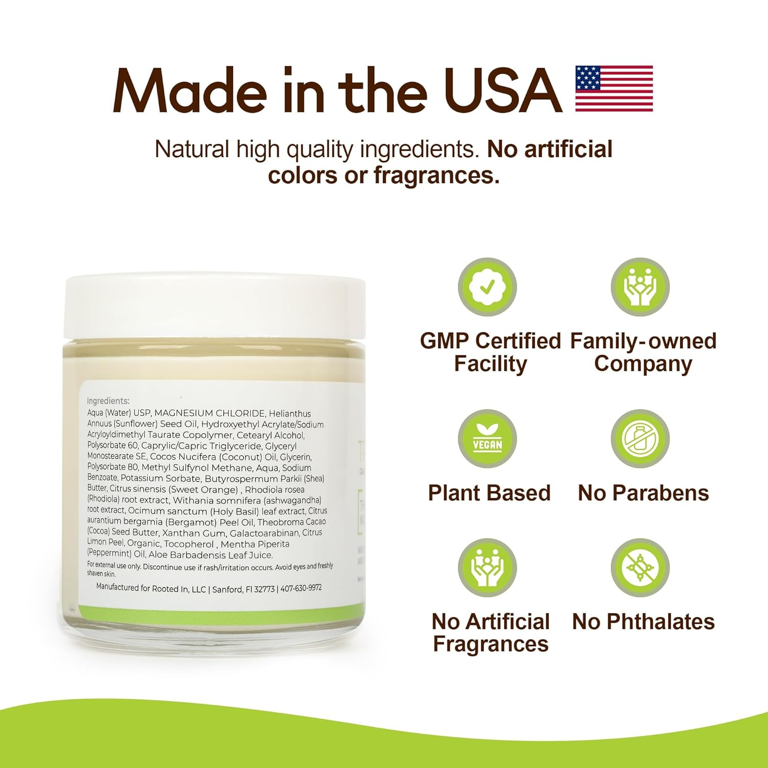 Tranquility Cream is specially formulated with high-quality magnesium and a blend of calming plant oils that are gentle and safe for sensitive skin.